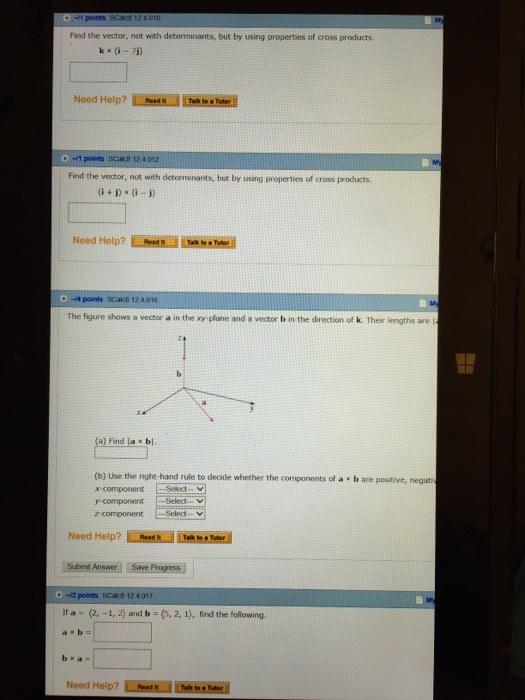 Find The Vector, Not With Determinants, But By Using Properties Of Cross Products. (I × J) × K. I know how to use the right hand rule for the cross product, but how do you find the exact vector without using determinants? (b) use cross products to see if each pair of ratios forms a proportion. Next, without outlining which properties are. By using our site, you acknowledge that you have read and understand our cookie policy, privacy policy, and our terms of service. Using the distributive property again, any vector crossed with itself is the zero vector, so you get. Consider the planes given by the equations 2y−2x−z=2 x−2y+3z=7 (a) find a vector v parallel to the line of intersection of the planes. Since the cross product is distributive over addition. By anticommutativity, scalars can be factored, so. I tried working it out and somehow managed to get k x k = 0 (subbing in k for i x j) but i'm not sure if i'm using the right properties. Because , and by anticommutativity, you are left with. I'm a little confused on what they mean by properties of cross products. Here, this is j minus k cross k minus. See, control i and kay cross k is siro and the across i is conectiv, kay and k trust i is equal to zero. The vector, using the properties of cross products. The problem is finding the factor not always determinants at by using properties ofthe cross products.