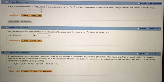 - Solved: -/1 Points Scalcet8M 13.1.043. Find A Vector Funct ... : The Vector Function Of The Curve That Intersects Two Surfaces.