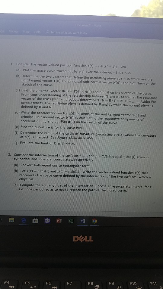- Dedicated To Ashley & Iris - Документ - Given Data X, Y, And Z Are Parametric Equations Of Space Curve C.