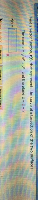 Find A Vector Function, R(T), That Represents The Curve Of Intersection Of The Two Surfaces. Indeed recently has been sought by consumers around us, perhaps one of you personally. Individuals are now accustomed to using the net in gadgets to see video and image information for inspiration, and according to the name of the post I will discuss about Find A Vector Function, R(T), That Represents The Curve Of Intersection Of The Two Surfaces..