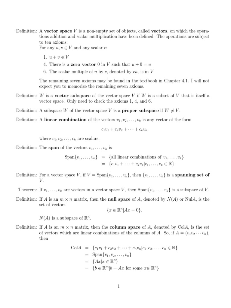 Axioms for a vector space are: A vector space is a nonempty set v of objects, called vectors, on which are defined two operations, called addition and multiplication by scalars (real numbers), subject to the ten axioms below. Feel free to fork the repository and mess around with it however you want. Multiplication vector space axioms linear combination matrices properties. Scalars are often taken to be real numbers. Identify the addition and scalar multiplication operations on v. A mapping \begin{equation} k\times e\rightarrow e\colon (\lambda,x)\rightarrow \lambda x, \end{equation} which satisfies the following axioms. Axioms of real vector spaces. Show a set as a vector space. The vector space axioms talk about only two operations: Visit byju's to learn the axioms, rules, properties and problems based on it. A vector space (also called a linear space) is a collection of objects called vectors, which may be added together and multiplied (scaled) by numbers, called scalars. Vector space, a set of multidimensional quantities, known as vectors, together with a set of vector spaces are fundamental to linear algebra and appear throughout mathematics and physics. The vector space axioms ensure the existence of an element −v of v with the property that v +(−v) = 0, where 0 is the zero element of v. Well, i hope you enjoyed my vector space project! Jump to navigation jump to search. Null space and column space. One can find many interesting vector spaces, such as the following the other axioms should also be checked. Axioms for a vector space are: Even though it's enough to find one axiom that fails for something to not be a vector space, finding all the axiom 5 is a bit tricky: An abelian group $e$, written additively, in which a multiplication of the elements by scalars is defined, i.e. A vector space v is a set that is closed under finite vector addition and scalar multiplication operations. Let x be a complex vector space. The identity x+v = u is satised when x = u+(−v), since. Vector space can be defined by ten axioms. This can be done using properties of the real numbers. In this lecture, i introduce the axioms of a vector space and describe what they mean. The vector space axioms are the defining properties of a vector space. I created a mnemonic mad which helps to remember them. (i am avoiding danny can select colors of his choice, only wendy's axioms should be satisfied. If m is a real hyperspace in x, then m ∩ im is a hyperspace in m considered as weak forms of the axiom of choice, these principles are all equivalent to each other.